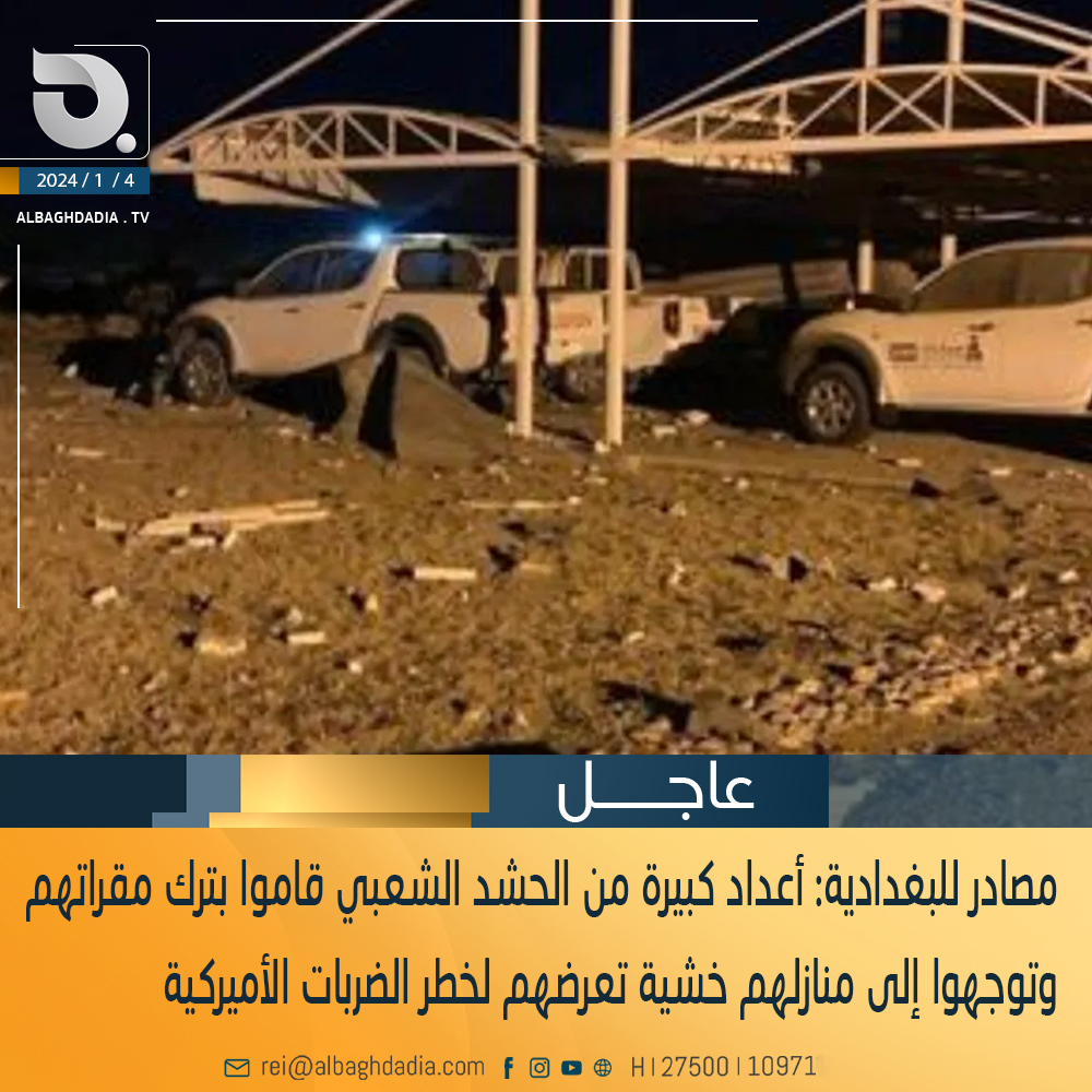 مصادر للبغدادية: أعداد كبيرة من الحشد الشعبي قاموا بترك مقراتهم وتوجهوا إلى منازلهم خشية تعرضهم لخطر الضربات الأميركية وسط تأكيدات بأنها ستتواصل دون انقطاع