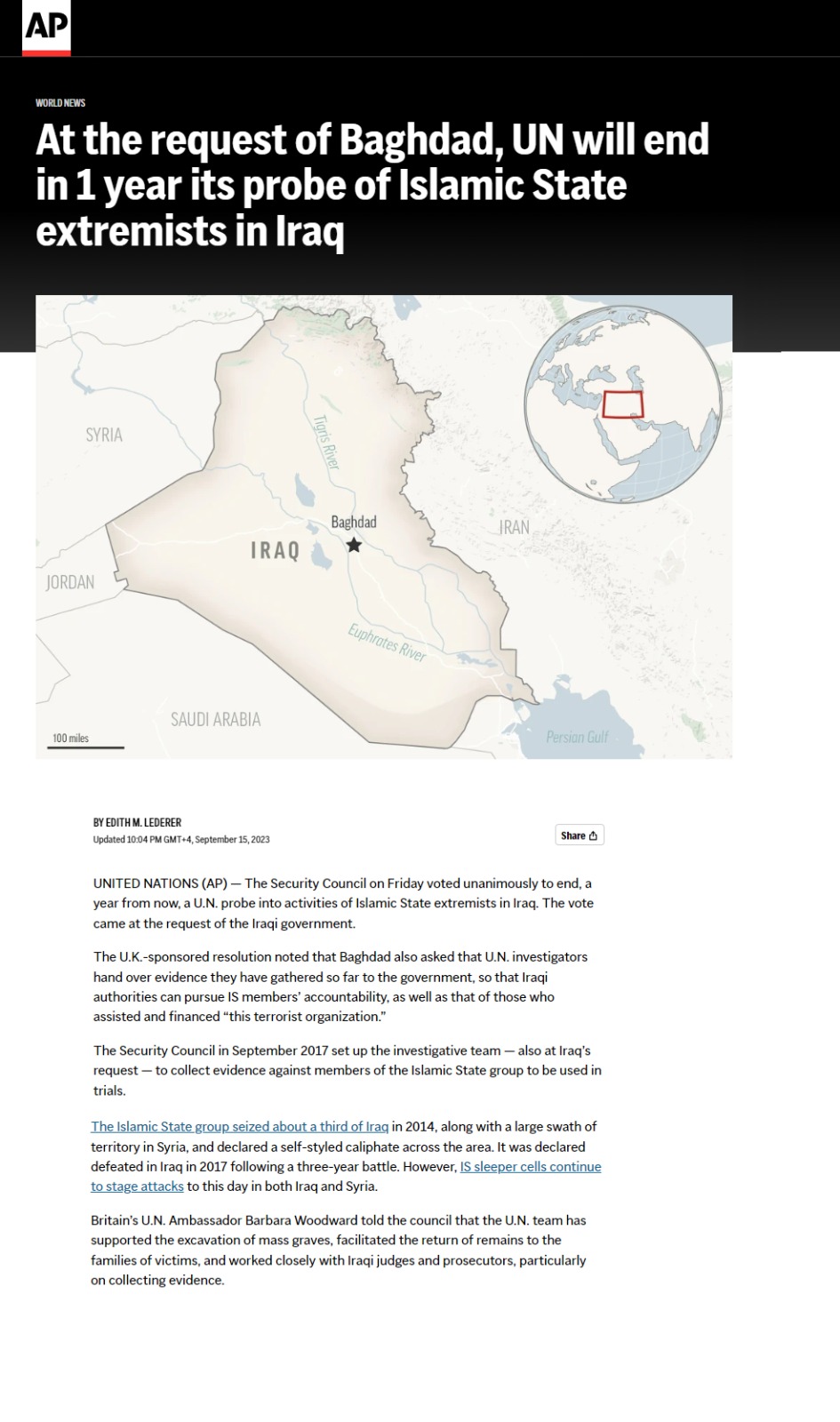 وأشارت أسوشيتد برس إلى أن الدول الغربية تمتنع بدرجة كبيرة عن استعادة مواطنيها الذين كانوا أعضاء في داعش تحت ذريعة أن خلايا داعش النائمة لا تزال تنفذ هجمات قاتلة.