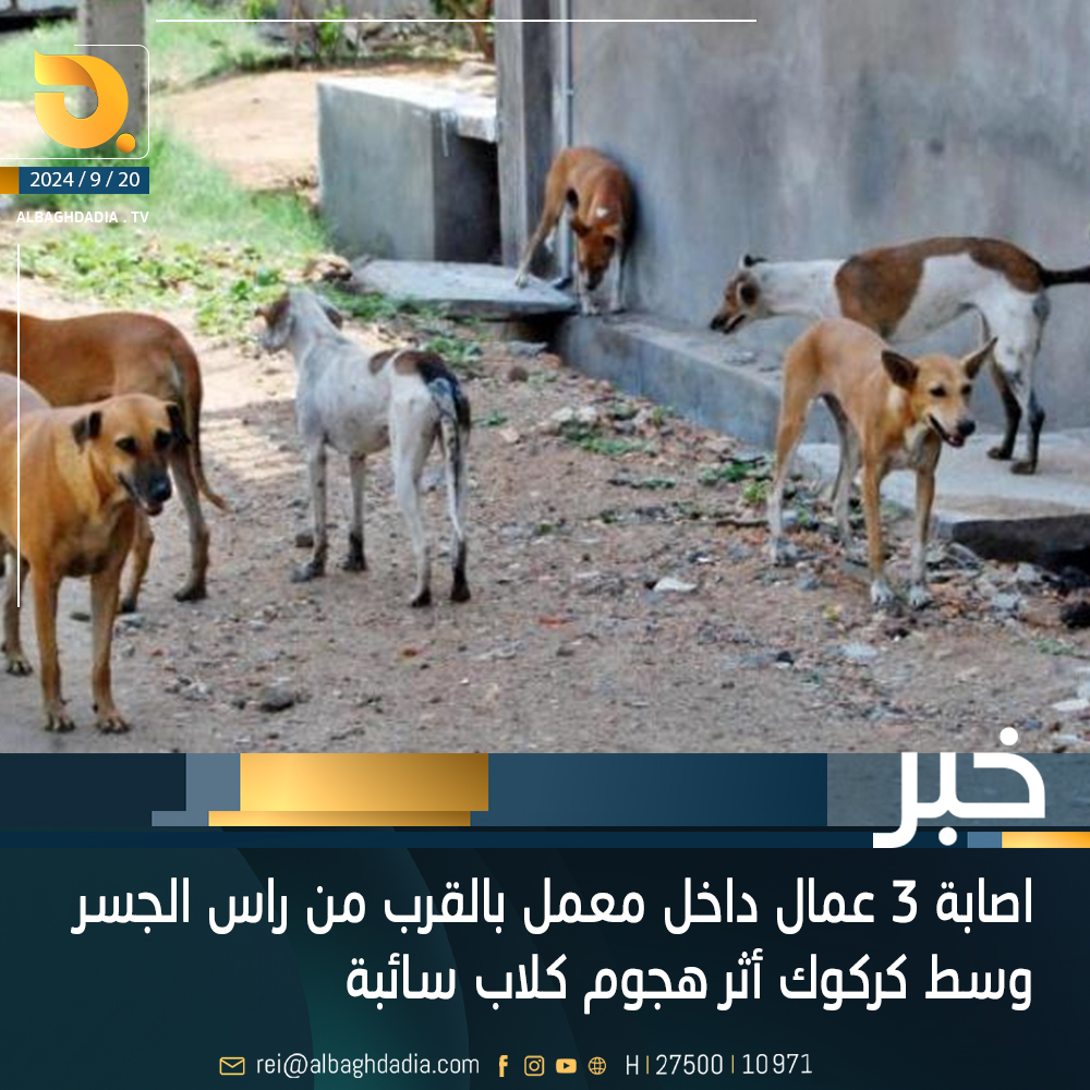 إصابة 3 عمال داخل معمل بالقرب من راس الجسر بكركوك أثر هجوم كلاب سائبة