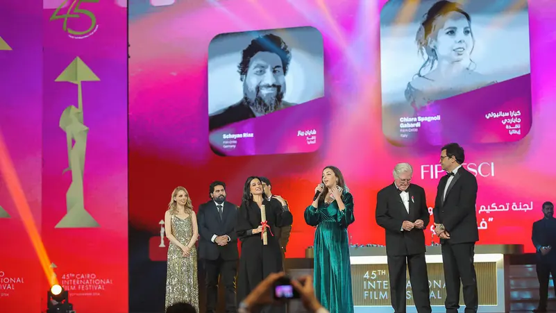 اختتم مهرجان القاهرة السينمائي الدولي دورته الـ45، بحضور نخبة كبيرة من صناع السينما العربية والعالمية، ومع البداية كانت قصيدة الشاعر الفلسطيني محمود درويش “على هذه الأرض ما يستحق الحياة”، ثم كلمة رئيس المهرجان الفنان النجم حسين فهمي الذي أكد أن دورة هذا العام كانت بامتياز فلسطينية، حيث احتفى المهرجان بالأفلام الفلسطينية، ومن ضمنها فيلم الافتتاح “أحلام عابرة “للمخرج رشيد مشهراوي، تلاها استعراض لفرقة “وطن للفنون الشعبية” الفلسطينية، وسط تفاعل الحاضرين، مثلما حدث في حفل افتتاح المهرجان في لفتة تضامنية من المهرجان مع أهل فلسطين، ليظهر بعدها حسين فهمي وهو يتوسط الفرقة، وبعد العرض قدم الشكر للفرقة وهم جميعا حضروا من غزة.
