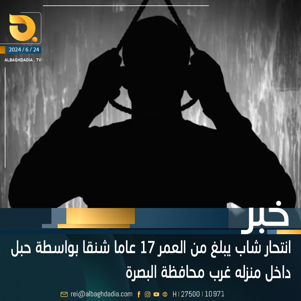 انتحار شاب يبلغ من العمر 17 عاما شنقا بواسطة حبل داخل منزله غرب محافظة البصرة