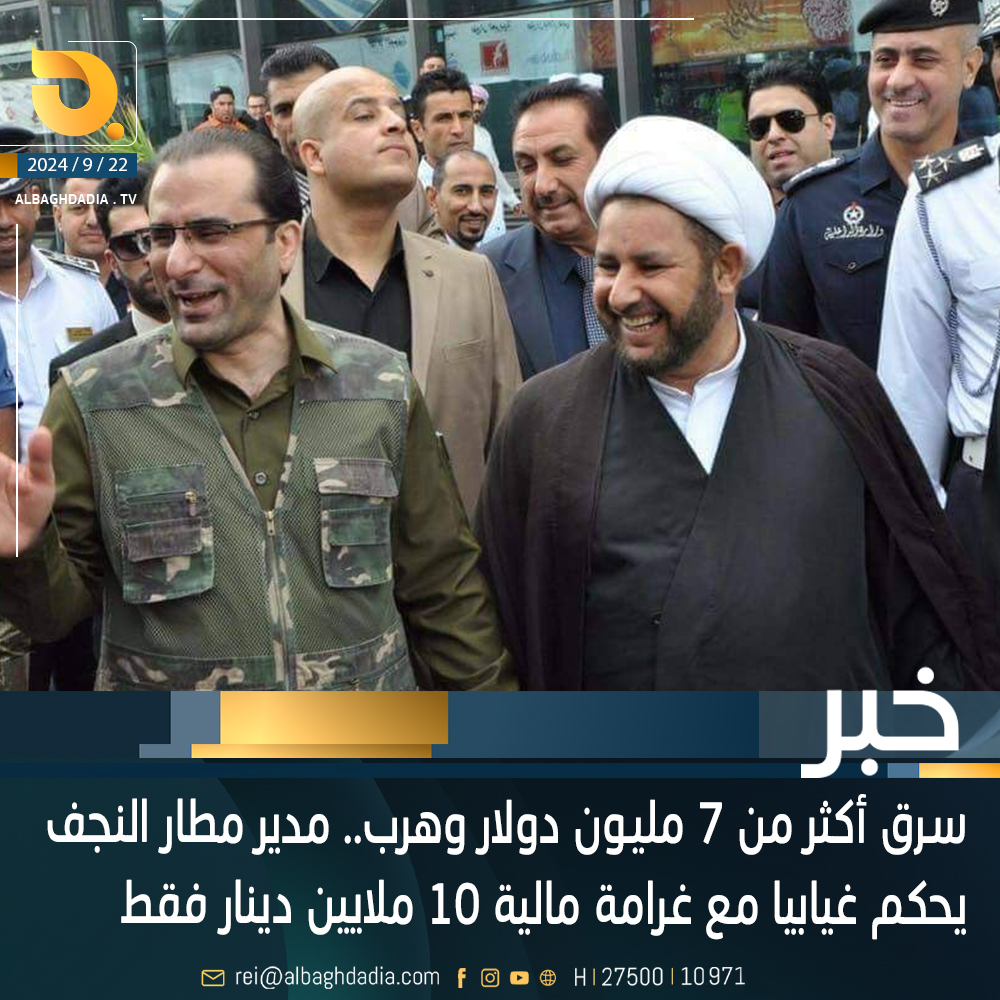 بصفقة واحدة سرق أكثر من 7 مليـون دولار وهرب.. القيادي السابـق بأحزاب الفساد ومدير مطار النجف الهارب فائد الشمري يواجه حكما غيابيا مع غرامة مالية 10 ملايين دينار فقط