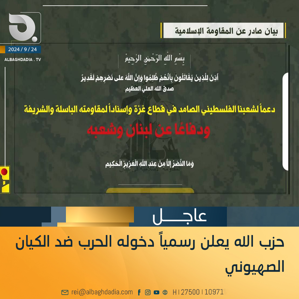 حــزب الله يعلن رسمياً دخوله الحرب ضد الكيان الصهيوني