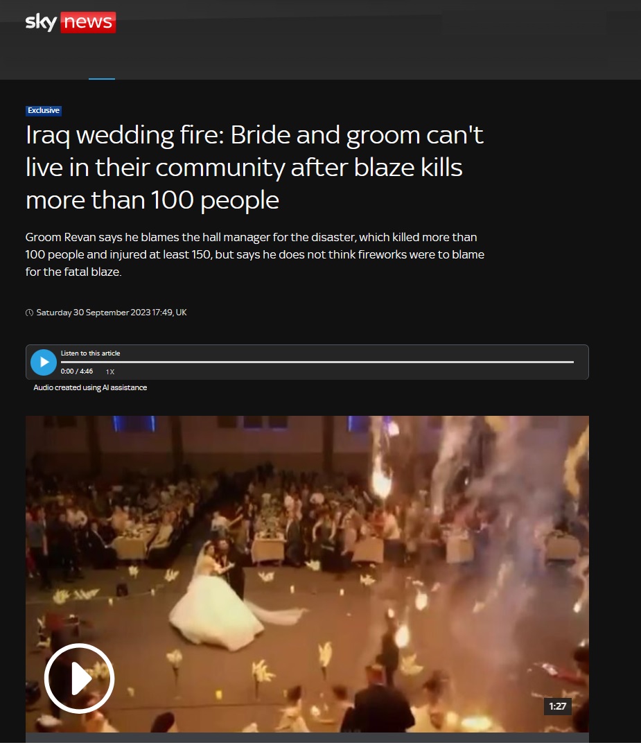 نشرت شبكة سكاي نيوز البريطانية تقريرا بعنوان ” عروسا الحمدانية لا يستطيعون العيش في مجتمعهما ” قالت فيه إن عروس وعريس حريق الحمدانية أكدا في حوار للشبكة إنهما لم يعودا قادرين على العيش في مجتمعهما.