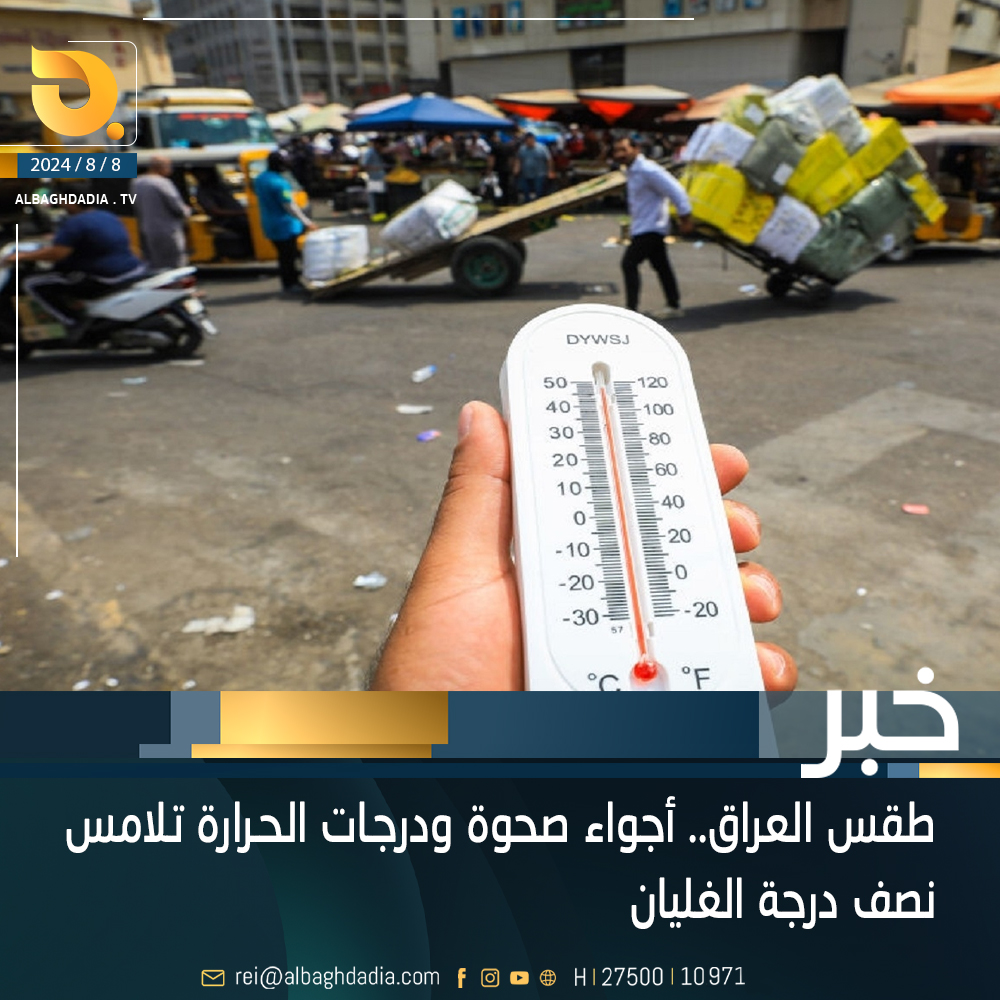 طقس العراق.. أجواء صحوة و درجات الحرارة تلامس نصف درجة الغليان