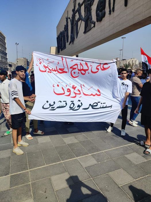 عشرات المتظاهرين يحيون الذكرى الخامسة لثورة تشرين في ساحة التحرير وسط بغداد
