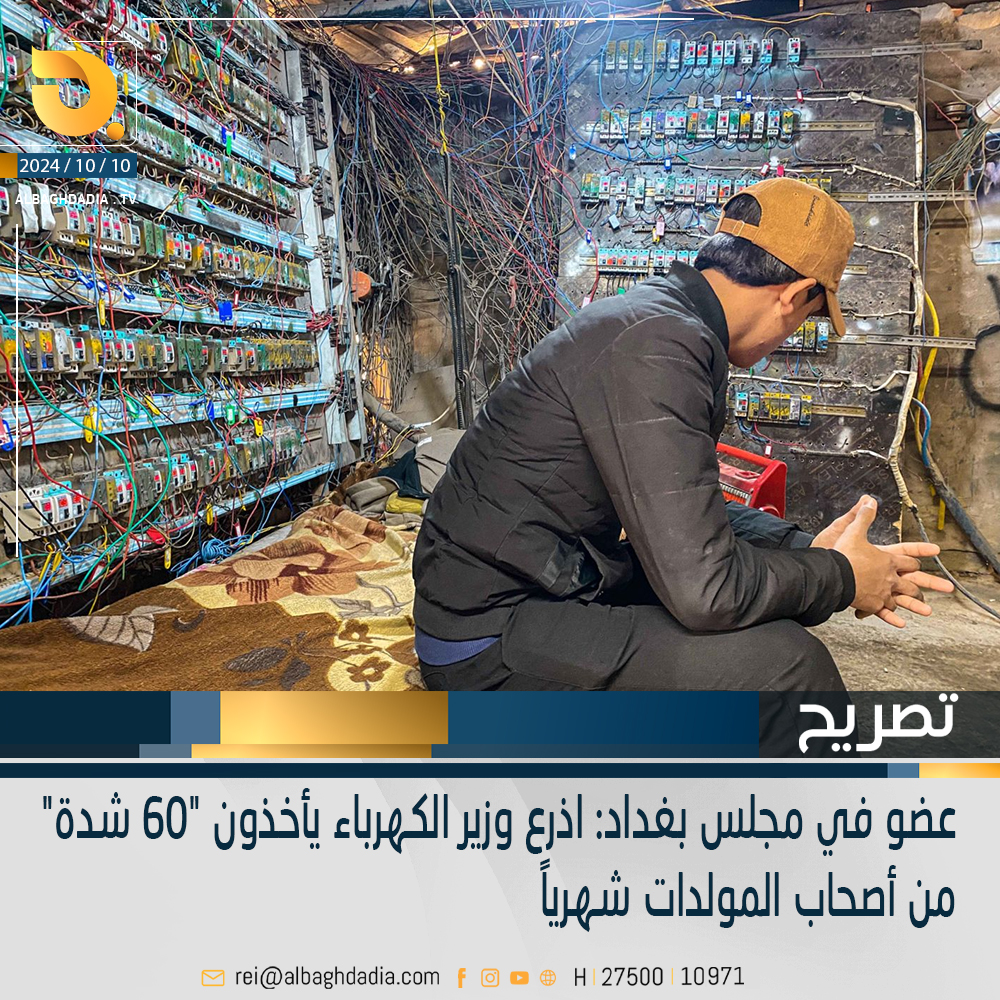 عضو في مجلس بغداد: اذرع وزير الكهرباء يأخذون “60 شدة” من أصحاب المولدات مقابل إعطاء الكهرباء لمنطقة على حساب أخرى