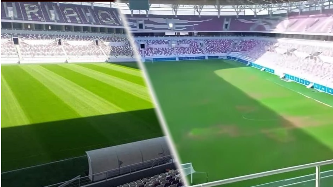 وأوضحت الصور من داخل الملعب تضرر الأرضية، ما دفع الى طرح تساؤلات عن سبب استبدال الأرضية السابقة التي كانت بمواصفات عالمية؟ ولماذا دمرت أرضية هذا الصرح الرياضي المهم؟