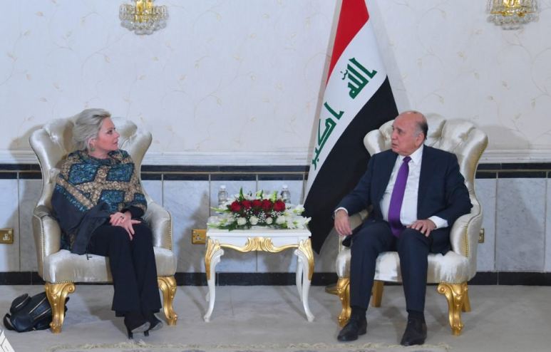 وزير الخارجية يبحث مع بلاسخارت التنسيق بملف حقوق الإنسان