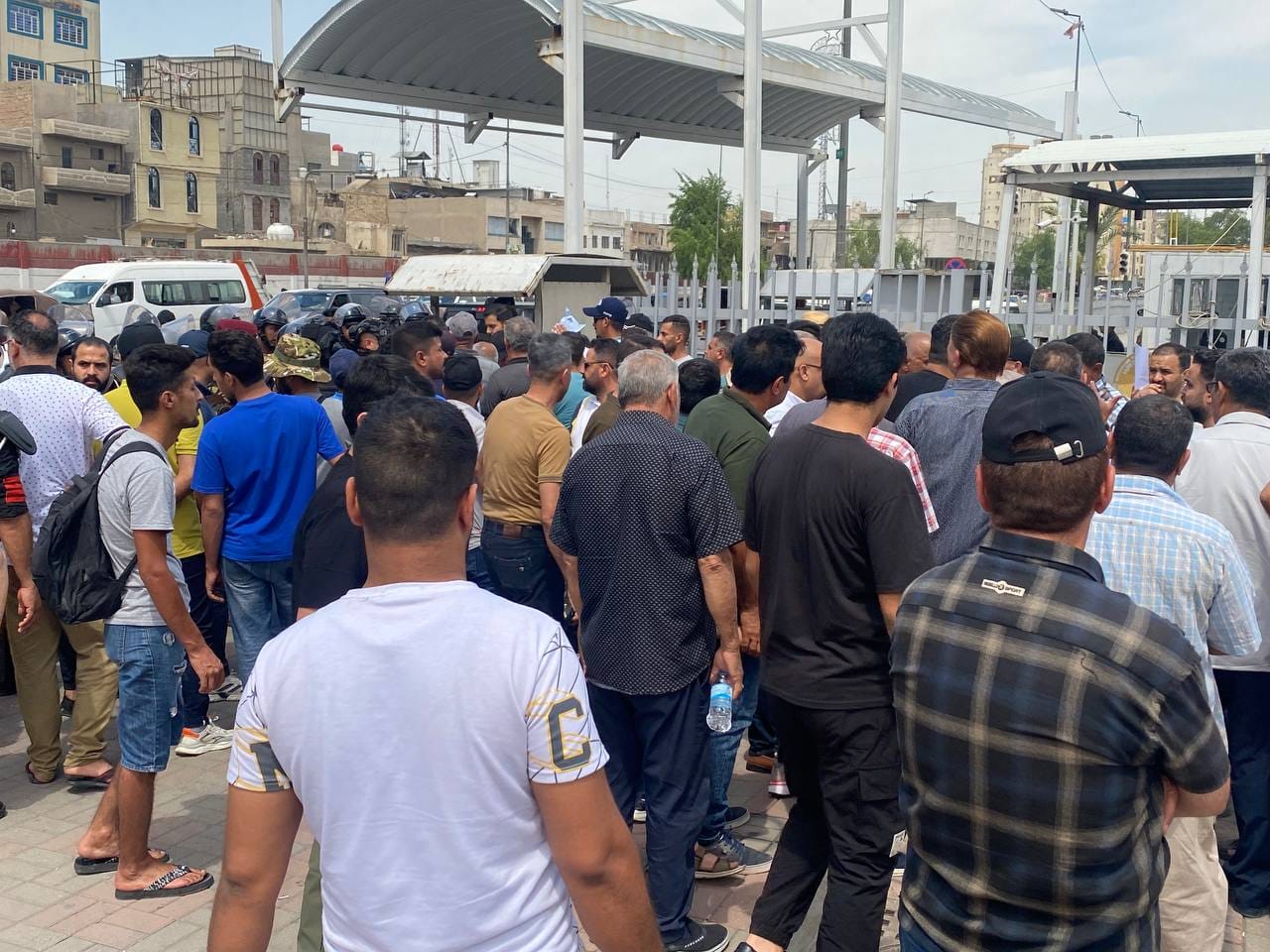 نظم عدد من أهالي منطقة أبو دشير الثانية جنوبي بغداد تظاهرة أمام مبنى امانة العاصمة مطالبين بالخدمات من ماء وكهرباء ومجاري وتعبيد للشوارع