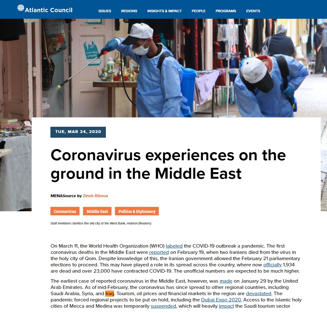 قال معهد أتلاتنيك كونسل للدراسات إن فيروس كورونا وضع الأنظمة الصحية في منطقة الشرق الأوسط أمام اختبار صعب مشيرة إلى أن بعض الدول تعاني في مكافحة الفيروس.