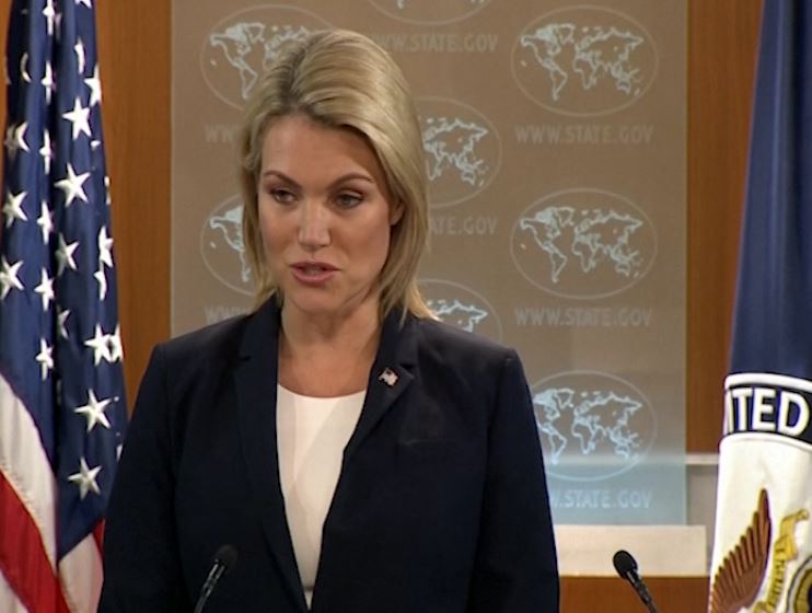 و قالت المتحدثة باسم وزارة الخارجية الأمريكية هيذر نويرت ،ان" الجانب الأمريكي سيعود إلى المفاوضات مع دمشق إذا ما كشفت الحكومة السورية عن الأسلحة الكيميائية التي في حوزتها"،مبينة انه" إذا تم تحقيق هذا الشرط، فإنه سيشجع الجانب الأمريكي على العودة إلى المفاوضات في جنيف".