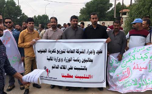 وقال مراسل /البغدادية/،ان” العشرات من موظفي عقود وإجراء شركة نفط الجنوب في البصرة جددوا تظاهراتهم ،اليوم،للمطالبة بتثبيتهم على الملاك الدائم”.
