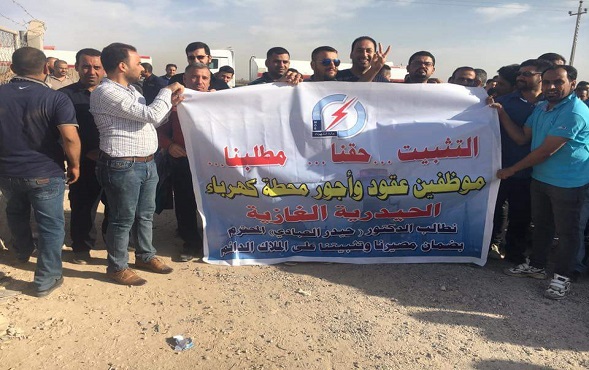 وقال أحد منظمي الاعتصامات لـ/البغدادية/،" نحن موظفو عقود واجور محطات كهرباء انتاج الفرات الاوسط محطة كهرباء الحيدرية الغازية ، بدأنا بتنفيذ اعتصام مفتوح من أجل الضغط على أصحاب القرار لتنفيذ مطالبنا المشروعة المتمثلة بتثبيتنا على الملاك الدائم وصرف رواتبنا المتاخرة لثلاثة اشهر".