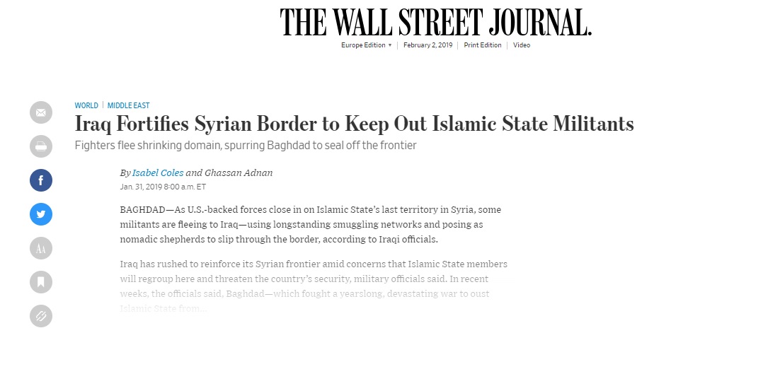 وأرسلت بغداد المزيد من القوات إلى الحدود، ونشرت عددا من المدفعيات والطائرات الحربية لضرب مسلحي تنظيم داعش داخل الأراضي السورية، وفق ما ذكرت الصحيفة الأميركية.