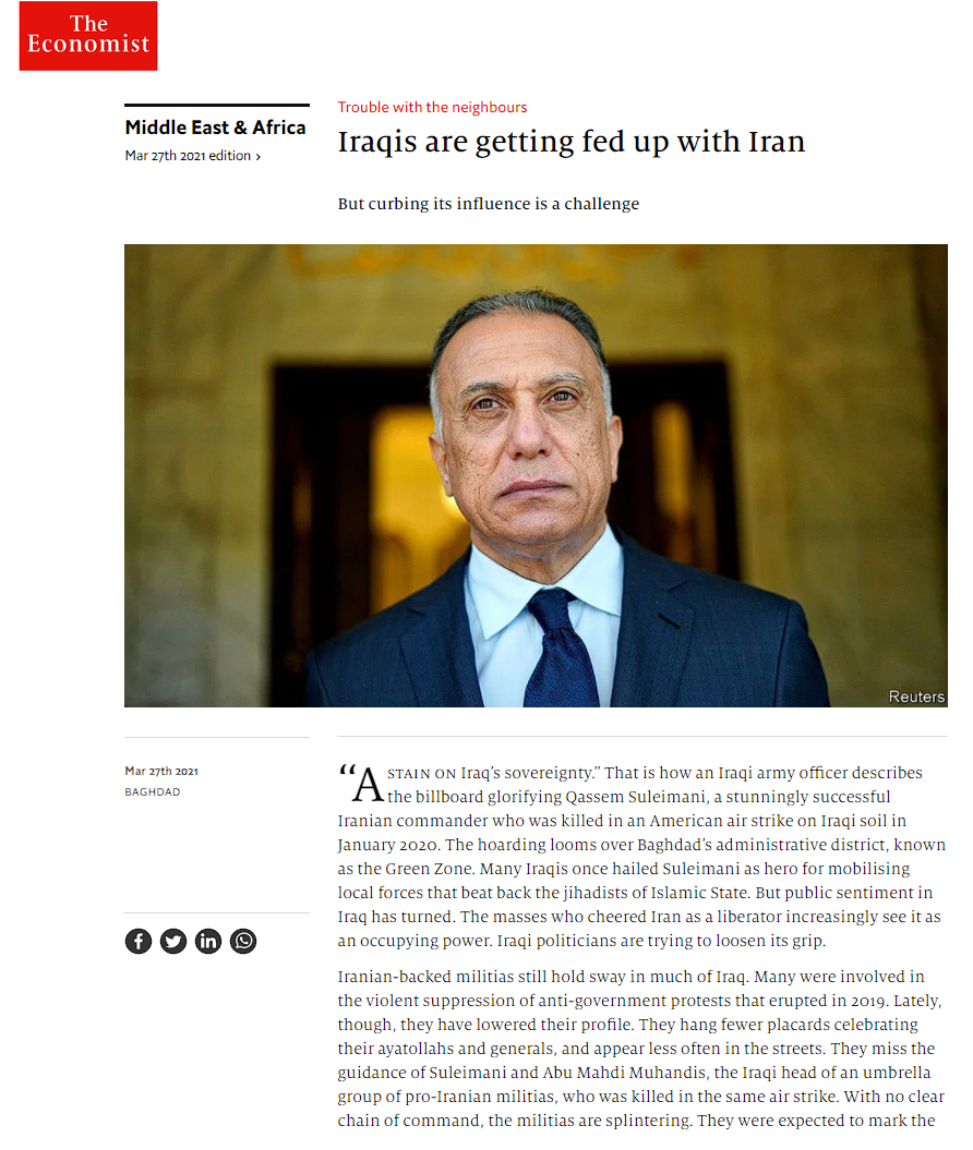 • ذا إيكونومست: العراقيون ضاقوا ذرعا من النفوذ الإيراني والميليشيات المسلحة الموالية لطهران