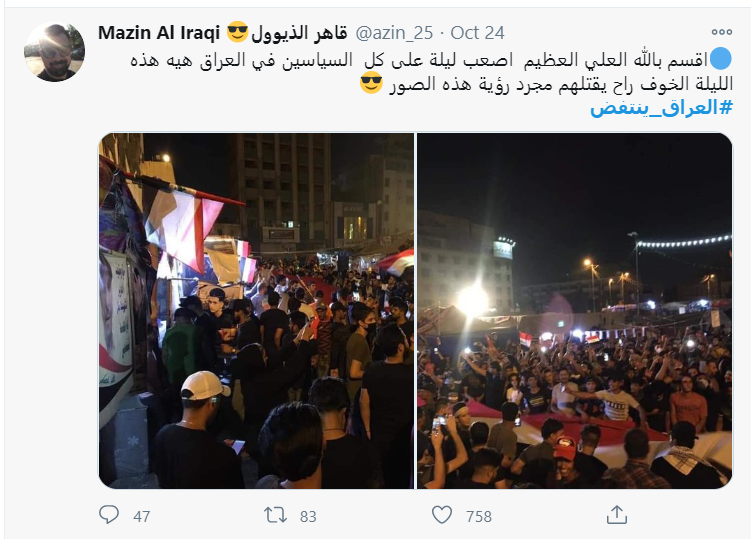 وقال التقرير إنه خلال الأسابيع الماضية تم تشكيل 60 تحالفا سياسيا جديدا منسوبا لثورة تشرين مشيرة إلى أن المواطنين يعتقدون بأن العديد منهم سيكون له ارتباطات مع الأحزاب السياسية القائمة لمجرد الدخول إلى البرلمان وهو ما عدوه انحرافا عن مطالب الثورة التي رفعت شعارات تغيير النظام السياسي