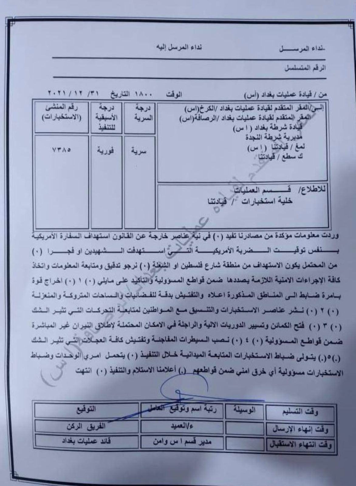 وأشار البيان، إلى أن “قوة من اللواء 24 فرقة المشاة السادسة نفذت واجب بحث وتفتيش نتج عنه ضبط عبوتين ناسفتين محليتي الصنع مخلفات حربية لعصابات داعش الإرهابية في مناطق البوعلوان غربي بغداد”.