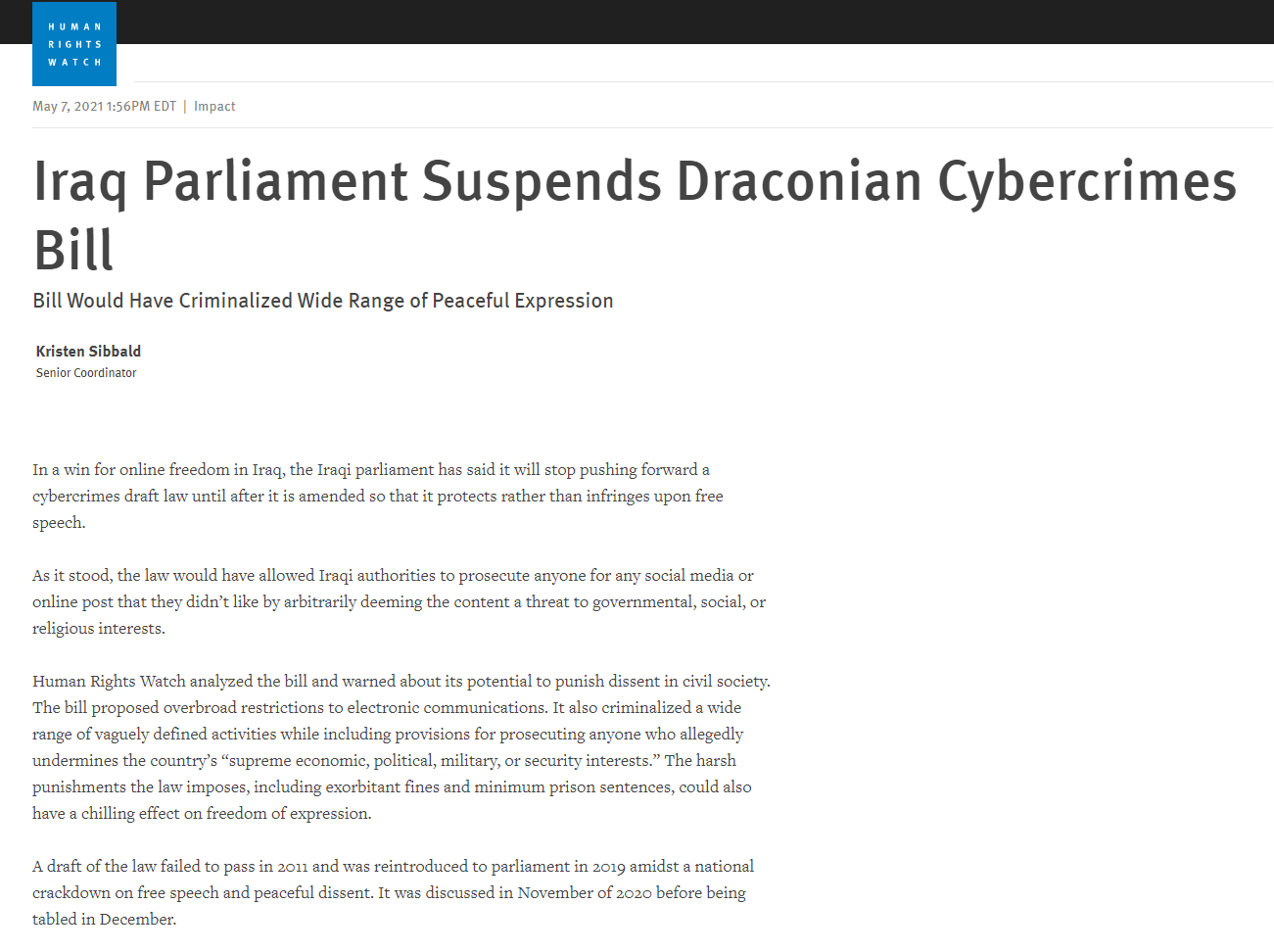 يسعى الإطار التنسيقي المدعوم إيرانيًا إلى تمرير مسودة قانون الجرائم المعلوماتية التي تُعدّ بعض فقراته مكبلة لحرية التعبير، وهو ما دعا مجموعة من النواب المستقلين إلى رفضه، معتبرين إن إدراجه ضمن جدول إعمال الجلسة يعدّ إنتهاكًا للنظام الداخلي.
